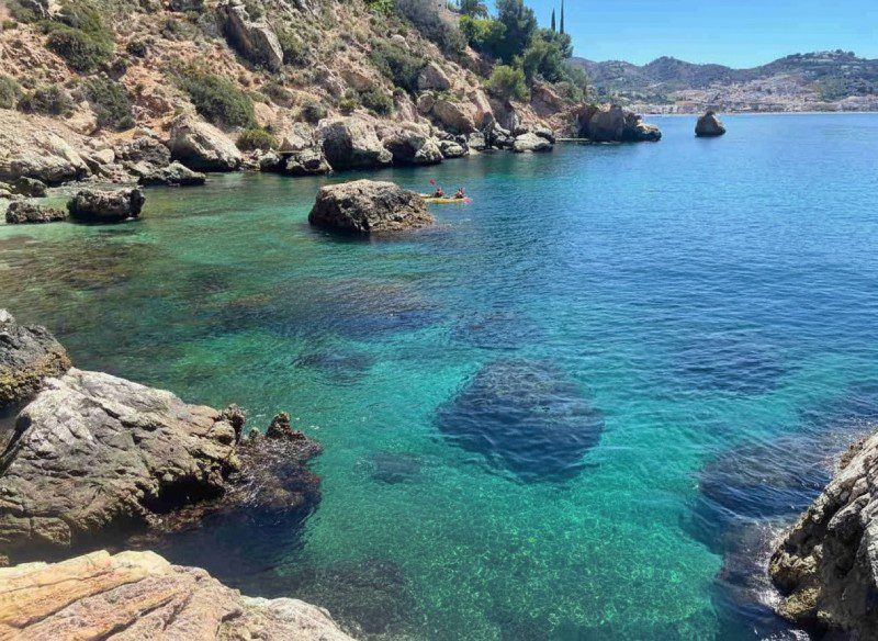 Porque reúne tres ingredientes clave: aguas transparentes, abrigo de los vientos más caprichosos y un entorno protegido dentro del Paraje Natural de los Acantilados de Maro–Cerro Gordo. O dicho de otra forma: calas y cortados donde el mar se vuelve cristal, vida marina muy variada y fondos que se conservan bien gracias a la figura de protección. Un escenario ideal para remar, bucear o hacer snorkel con total seguridad.