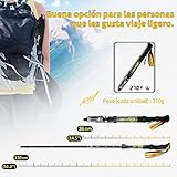 Ligero y Resistente: Nuestros bastones de senderismo están fabricados en aleación de aluminio 7075 que presenta bastones extrafuertes y ultraligeros para la mayorÃa de los excursionistas principiantes. Esta materia puede soportar más impacto y presión que el aluminio 6061 y la fibra de carbono